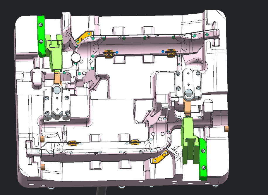 1、 當(dāng)塑件按開模方向不能順利脫模時(shí),應(yīng)設(shè)計(jì)抽芯滑塊機(jī)構(gòu)。抽芯機(jī)構(gòu)滑塊能成型復(fù)雜產(chǎn)品結(jié)構(gòu),但易引起產(chǎn)品拼縫線、縮水等缺陷,并增加模具成本縮短模具壽命。